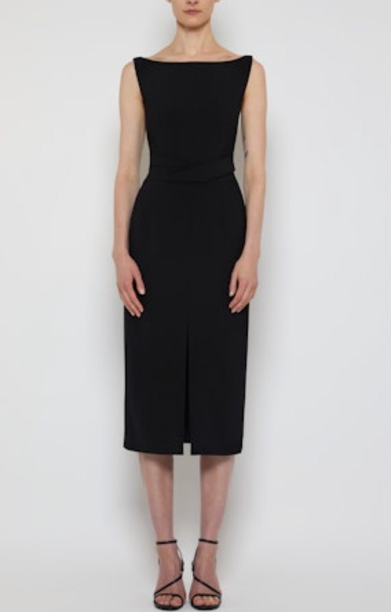 Boatneck Twist Waistband Sheath Dress