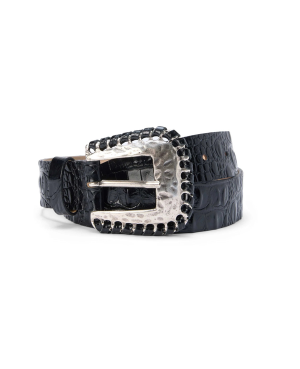 Black Embossed Crocodile Belt