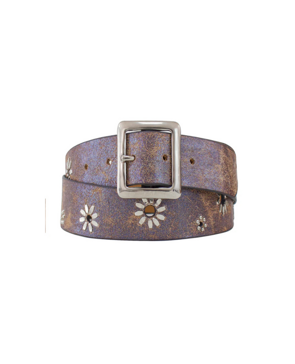 Blue Pearl Flores Leather Belt