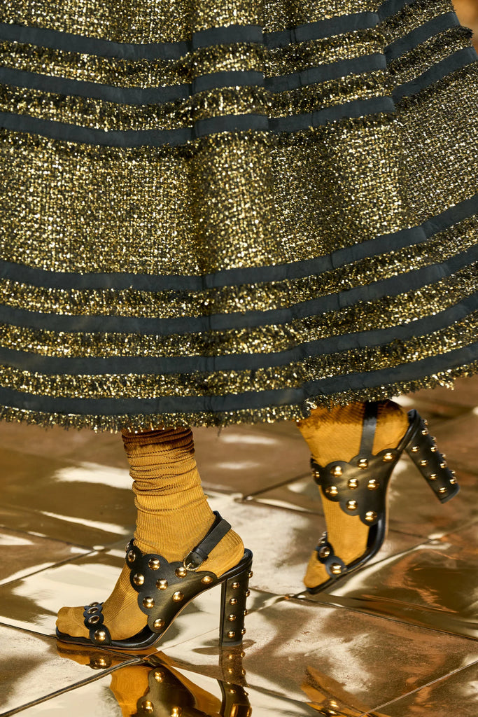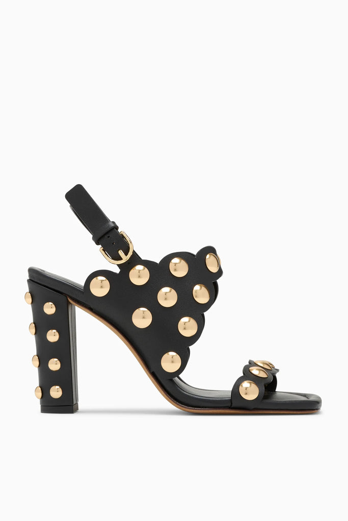 Available in Brown only. The Vendome Heel is crafted in Italy from black leather that’s boldly contrasted by dome-shaped golden studs. The block heel ensures elegant yet wearable elevation.