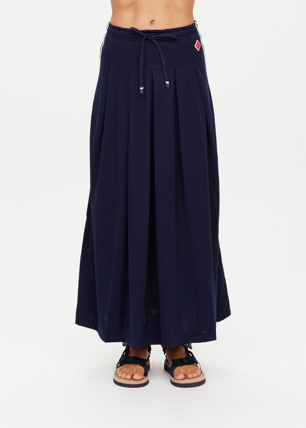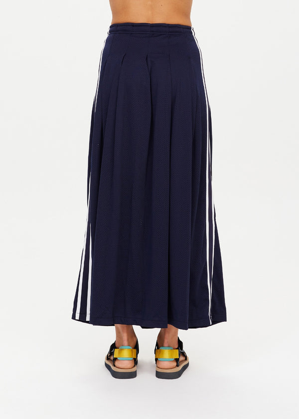Navy Loren Pleated Midi Skirt