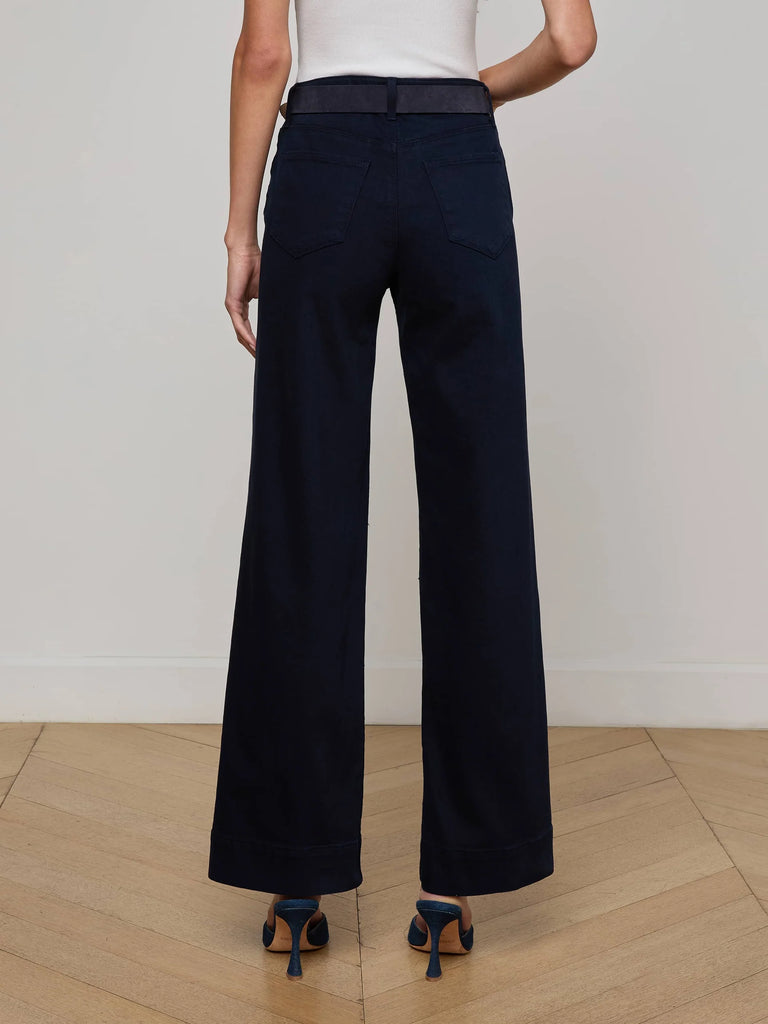 Patch pockets add a subtle ’70s appeal to our wide-leg jean. Now in deep midnight.• Subtle stretch denim• High-rise wide leg• Front and back patch pockets• Zip fly and button closure
