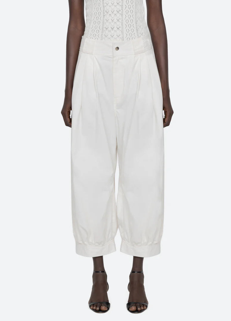 The Lois twill pants are crafted in a balloon silhouette with a gently cropped length and pleated detailing at the waistband. Pair with the coordinating Lois vest for a polished, contemporary ensemble.