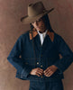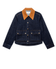 Inspired by heritage-style barn jackets, this reproduction has been reinterpreted with more interesting proportions. It features a cropped length that is longer at the back, creating a charming swing shape. The jacket is made of a structured rinse denim with a corduroy collar that adds authentic detailing. It also includes a snap-front closure with a hidden front zipper, along with traditionally pleated, three-dimensional pockets and snaps at the flap closure.