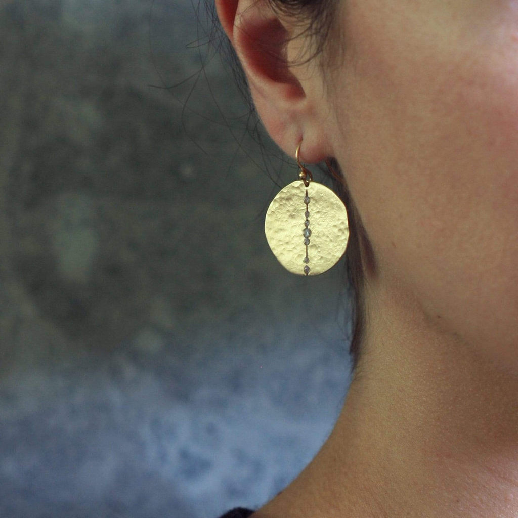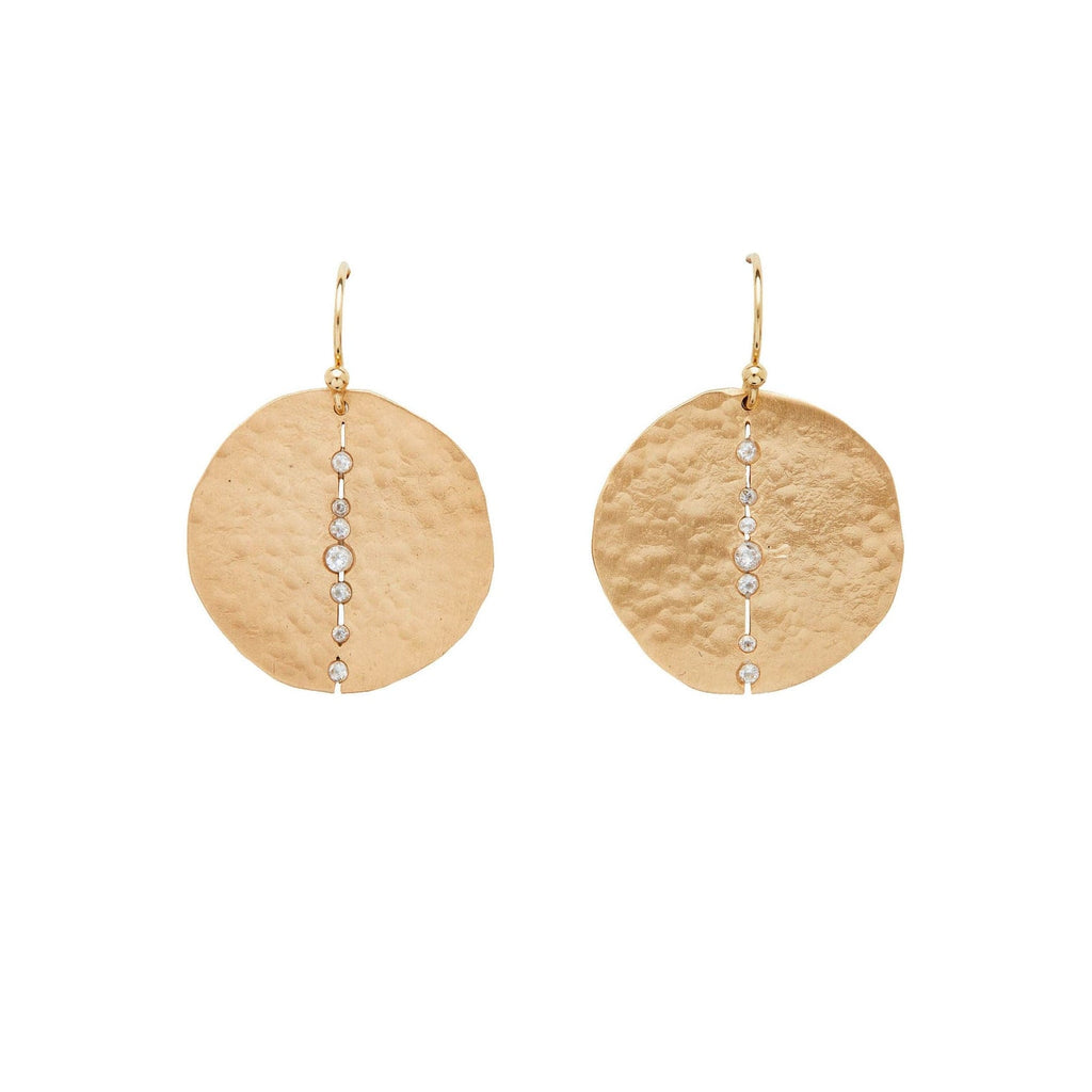 Bronze Orbit earring with cubic zirconia and gold filled ear wire; 1 inch.