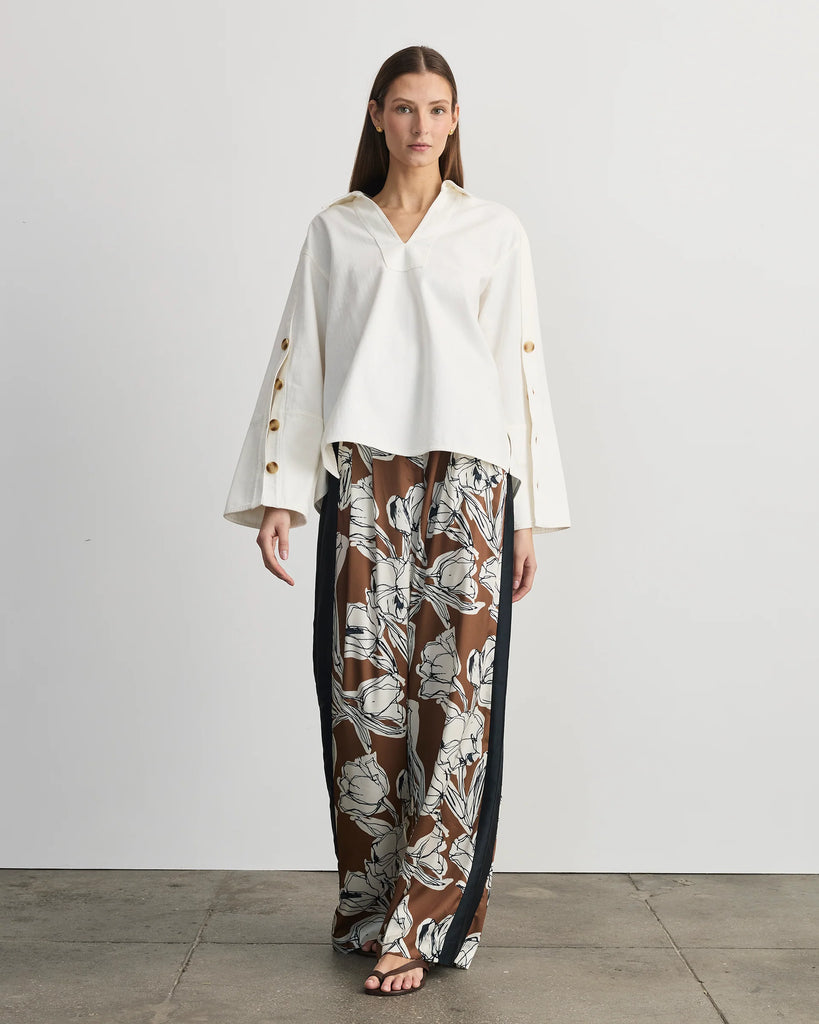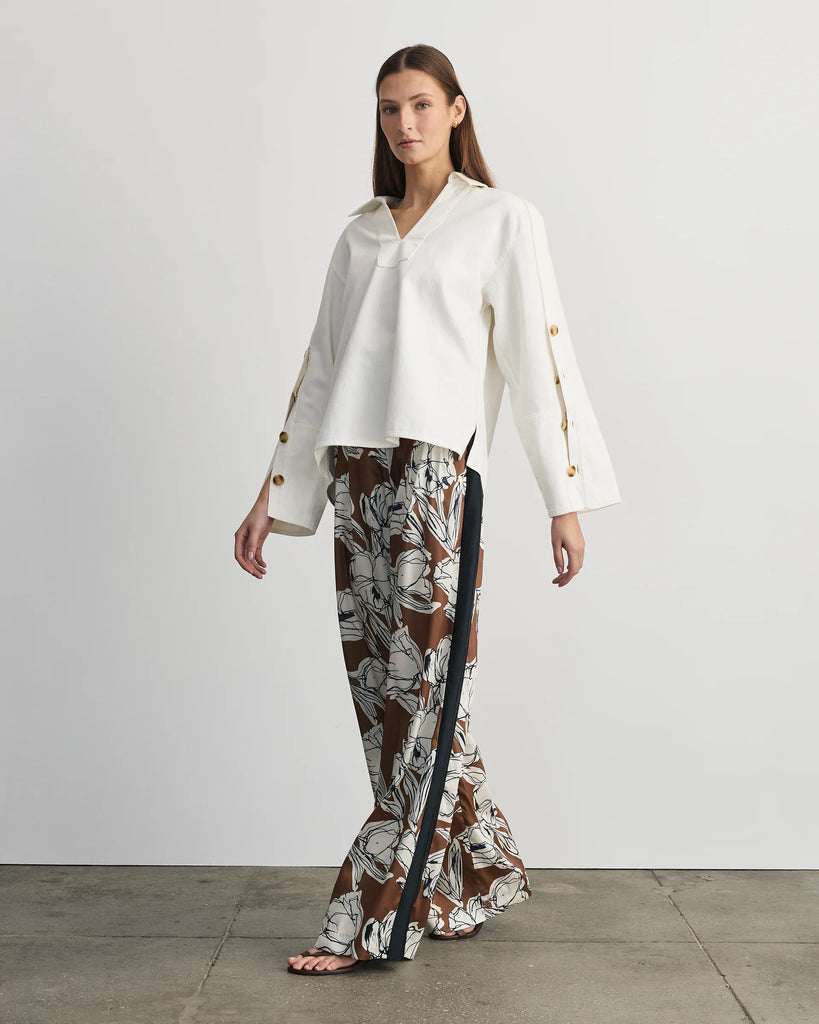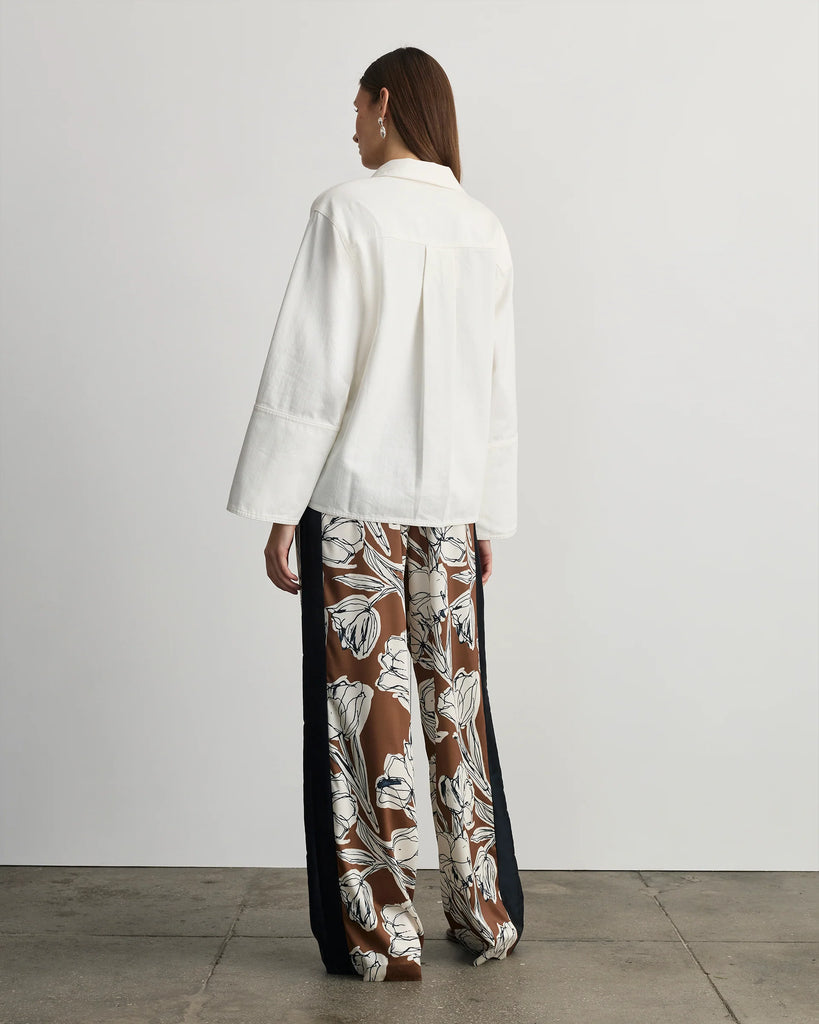 Designed in soft chalk denim and featuring functional tortoiseshell buttons on the sleeve for added interest, Lally brings sophistication to a springtime ease