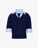 Designed in an extra fine lightweight merino wool with a cotton poplin collared v-neck and sleeve cuffs, Esme is a versatile polo knit that delivers a luxurious feel and comfort while adding polish to any look.