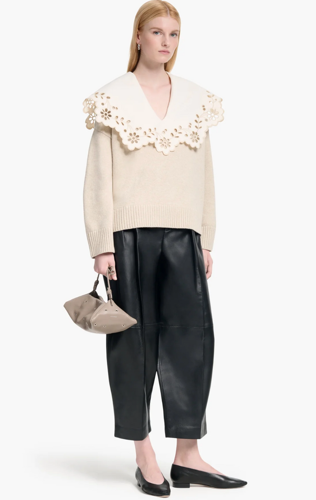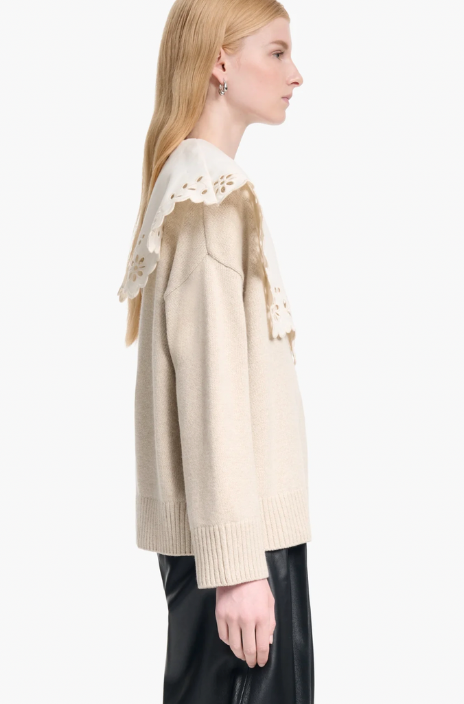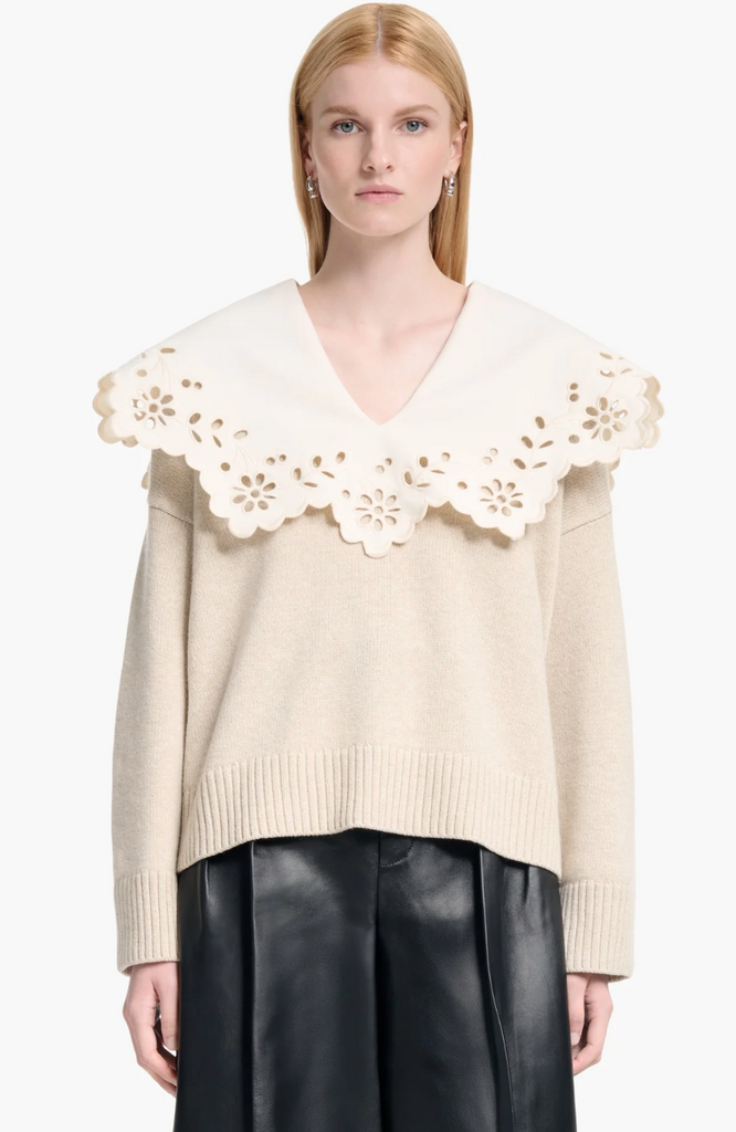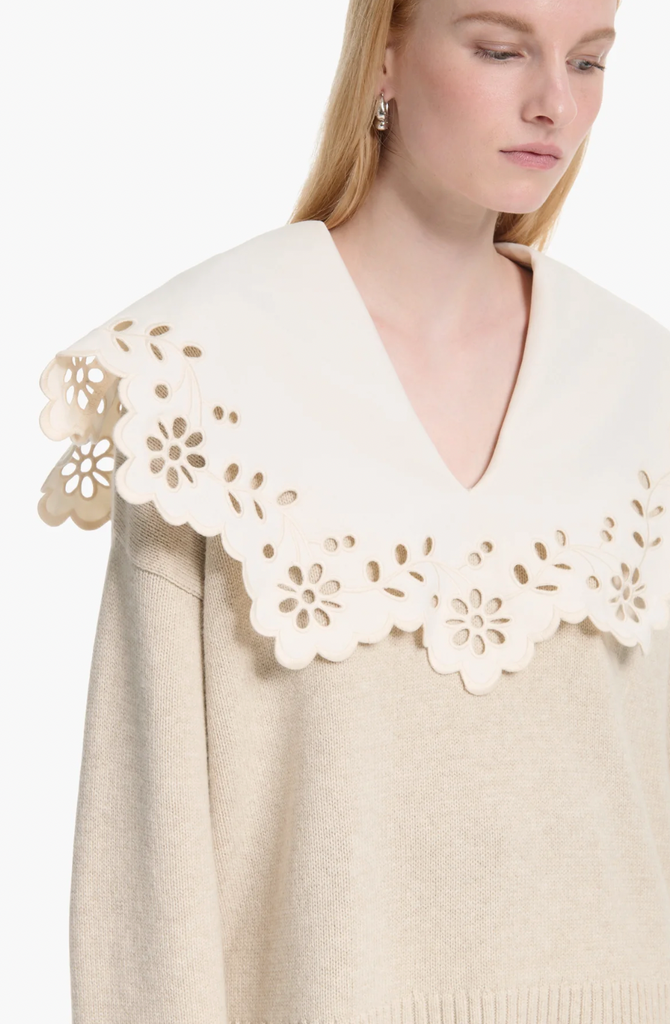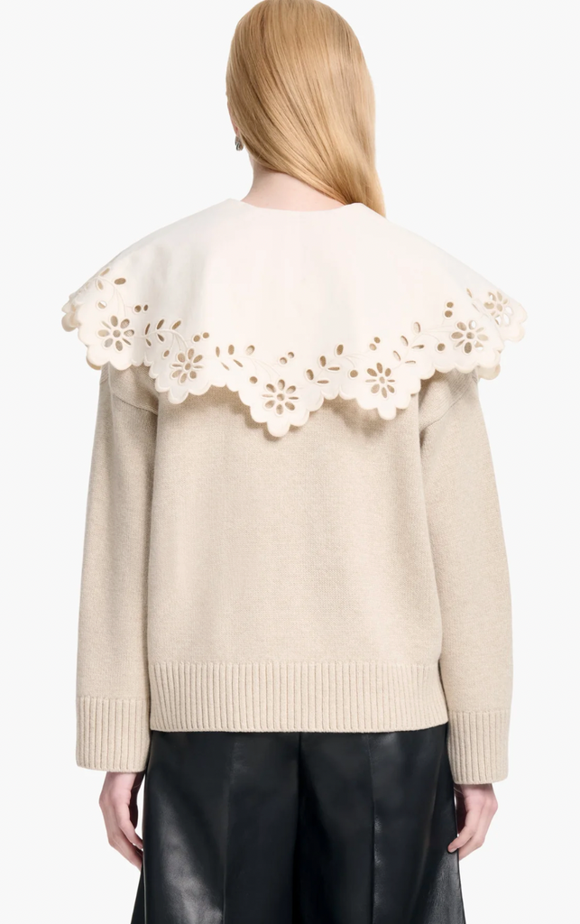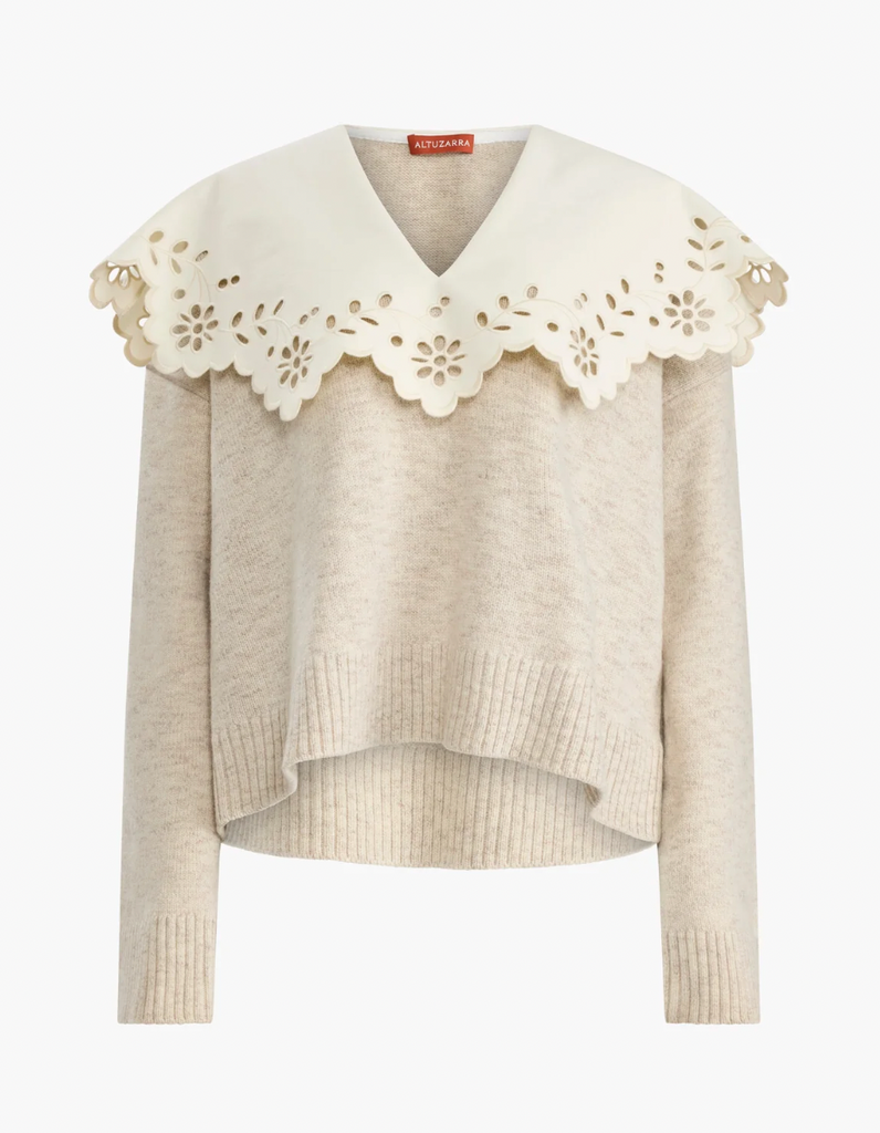 The Toro sweater taps Altuzarra's feminine aesthetic. It's made from extrafine merino wool with an oversized broderie anglaise collar. Style it tucked in to jeans and finish with sandals.
