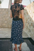 This lightweight silk midi skirt styles easily with the Nikola Top for golden hour drinks that lead to evenings spent dancing.