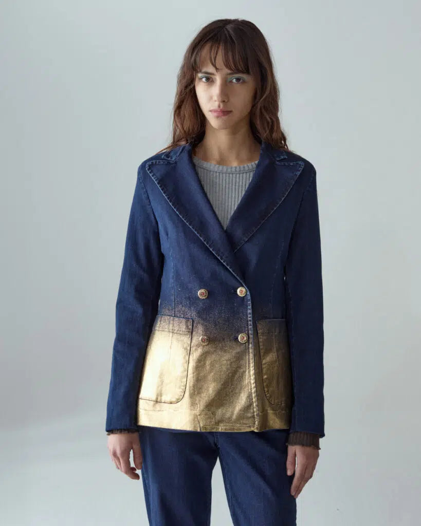 Regular-fit blazer in blue stretch denim. The fabric’s stretch ensures absolute comfort. Entirely Made in Italy.