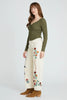 With its high 11" rise and relaxed 18" leg opening, the Elaine offers a contemporary fit that’s both flattering and comfortable. The neutral ecru base makes it a versatile piece, perfect for pairing with both soft neutrals and bold statement tops.