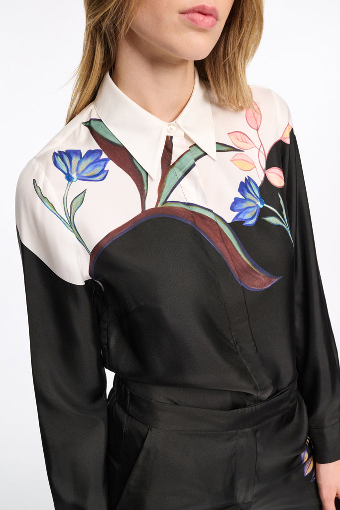 - Silk twill blouse with placement print