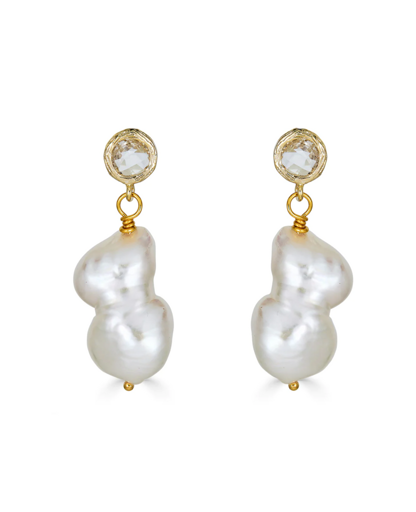 Refined and feminine, these pearl drop earrings feature delicate appeal brought together by forever-timeless baroque pearls. Dainty and effortless, these pearl earrings also feature crystal studs and are designed to make a sophisticated statement wherever you go. Each pair is masterfully crafted for those who love one-of-a-kind pieces, for no two baroque pearls are the same.