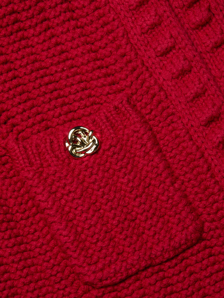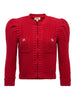 L'Agence signature cardigan top has been updated with three-quarter length sleeves. The Delli cardigan makes a statement in a richly textured knit with sculpted puff shoulders. Gold crest buttons at the chest pockets bring luxe edge, while the cropped, boxy fit keeps it modern. Wear it open over a tank with denim for daytime, or buttoned up with trousers for an elegant evening look.