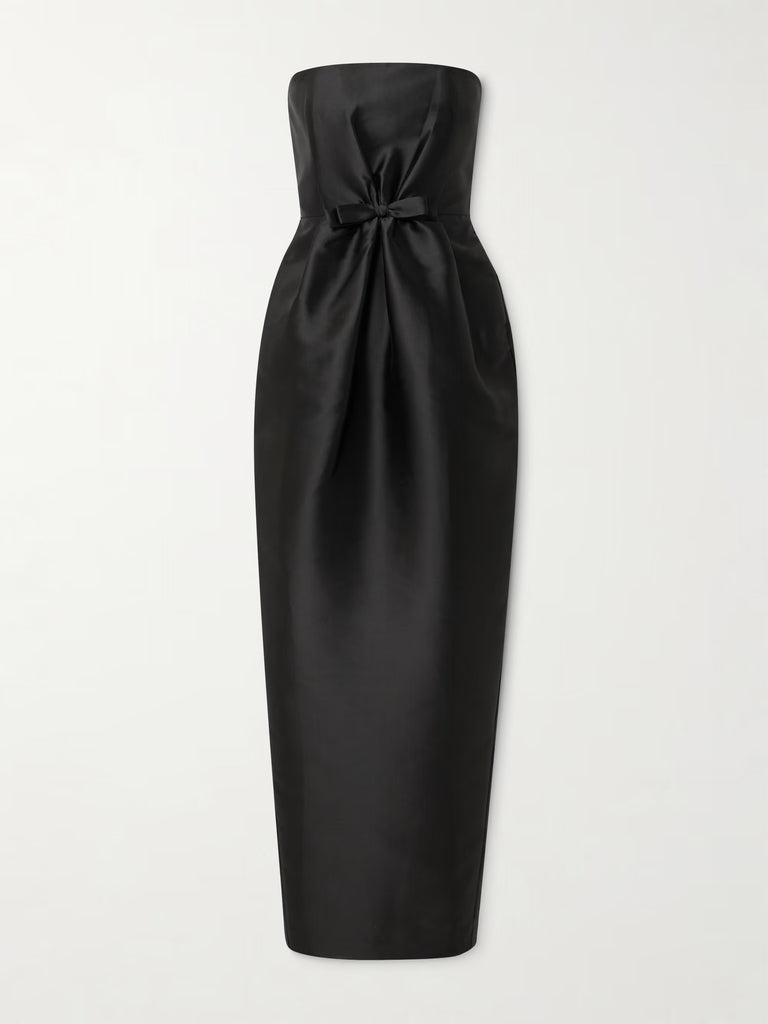 The 'Lenette' gown gathers delicately at the waist - the silhouette evokes '50s Hollywood starlets. It's made from lustrous, structured taffeta with boning through the bodice, and is tipped with a matching bow.